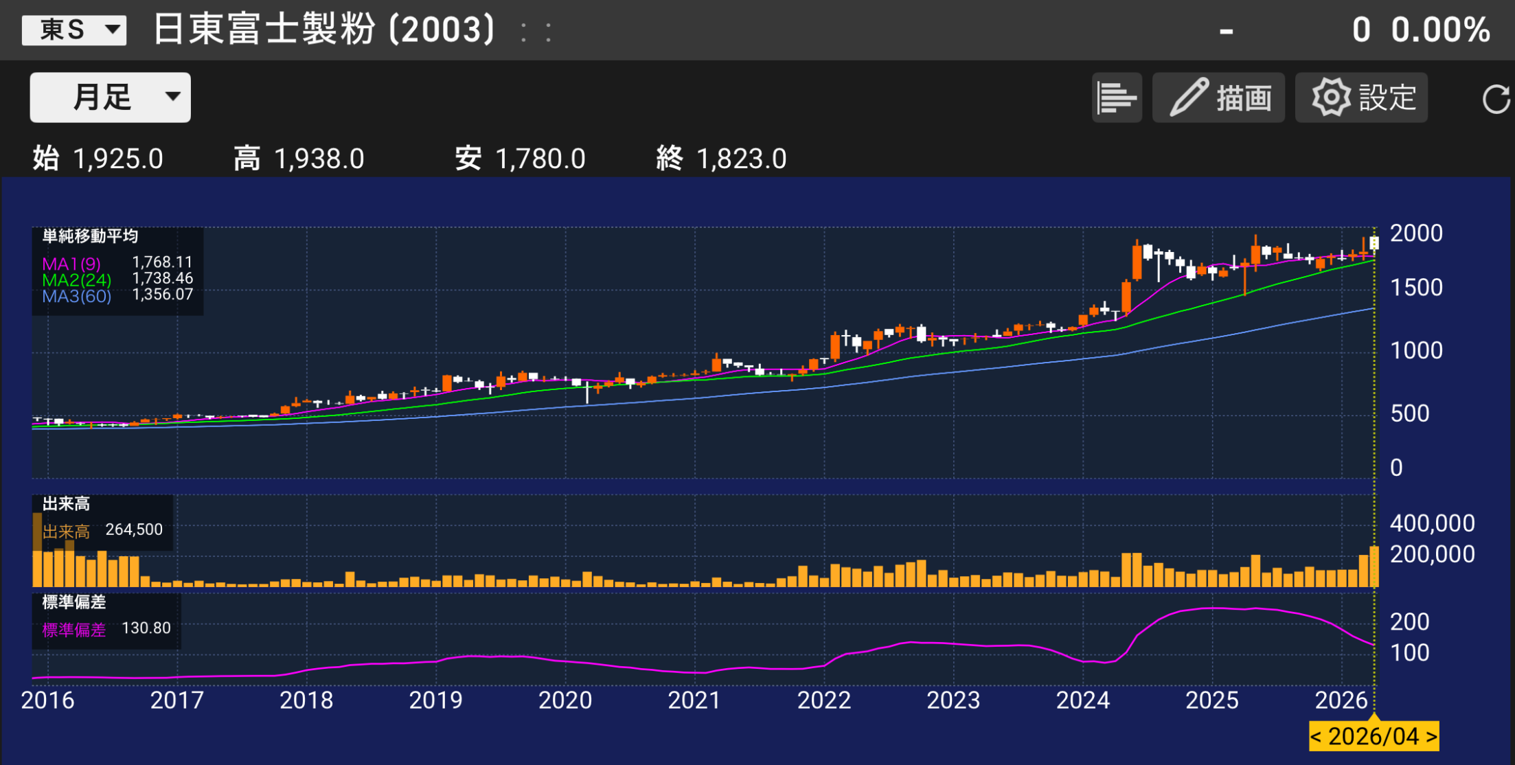 3月30日の急落時に1730円で購入。前からずっと欲しかった株ですが、以前は7000円台と買いづらい価格だったのが、今回4分の1で株式分割。小麦粉を作っている会社だからパティシエとして親近感があるんですよ。 しっかりと観測をして願わくば、年の半ばに買い増しを考えたいところ。
