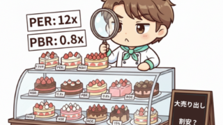 投資初心者必見!株価の「割安・割高」を判断する指標、PERとPBRをやさしく解説します。パティシエの視点で、ケーキの価値と値段に例えて違いをスッキリ整理。15倍や1倍といった目安の意味もわかります。
