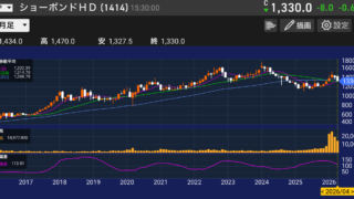 物色!個別銘柄 [1414]ショーボンドホールディングスをパティシエが分析!老朽インフラ補修の専門企業・連続増配と高ROEで着実に成長する社会インフラ株[2026/4/24] ショーボンドHD(1414)を分析。橋梁・トンネルなど社会インフラ補修に特化した専門企業。配当利回り3.42%・ROE14%台の高収益体質。連続増配と自社株買いで株主還元も積極化。 2026.04.24 物色!個別銘柄
