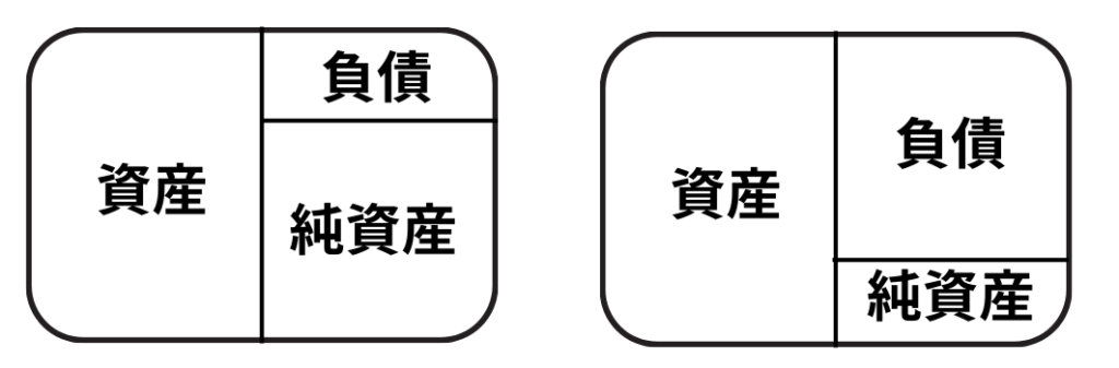 会社が持っているお金(資産)のうち、返さなくてはいけないお金(負債)と、返さなくていいお金(純資産)下の表で見ると・・・・